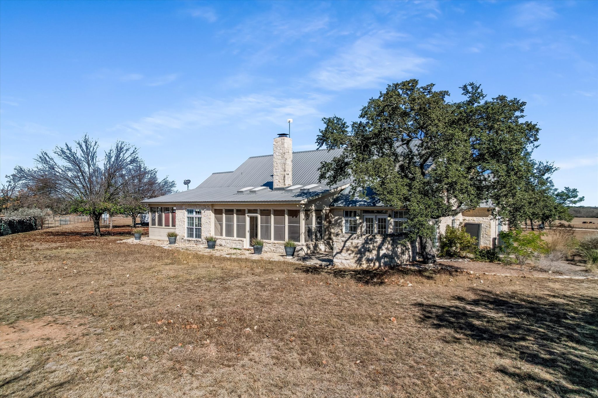 The limestone exterior and metal roof immediately establish a sense of classic Texas craftsmanship; and vintage wood doors and granite countertops throughout the home reinforce a warm, rustic charm that feels both authentic and enduring.