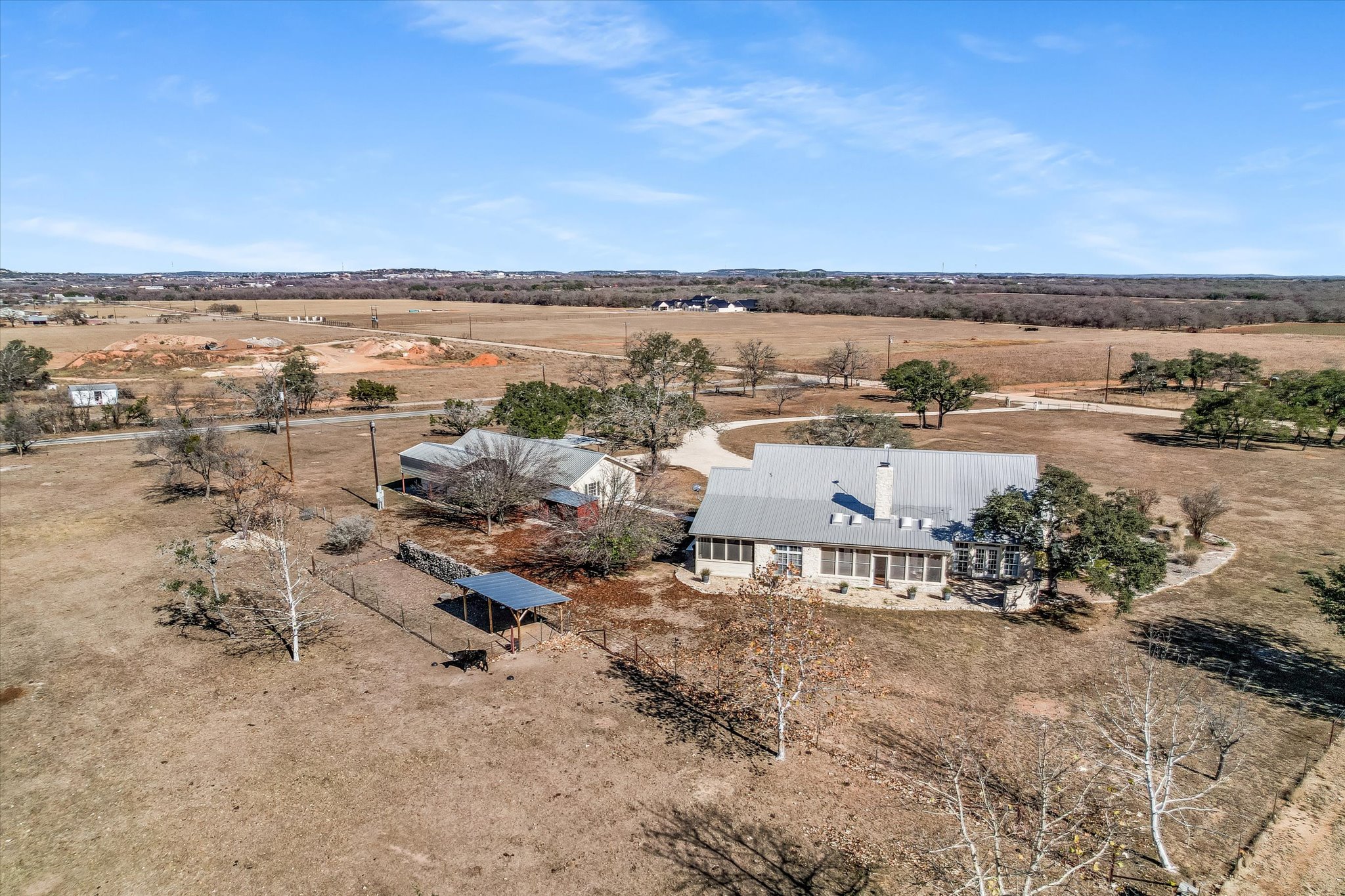 Dotted with mature oaks the level acreage offers plenty of room to roam, whether the roamers are human or animal. Currently the property has an agricultural exemption and hosts two steers, but can also provide a welcoming home for goats, chickens or other native wildlife. The flat landscape offers the opportunity to expand the compound with additional dwellings, a studio, pool or almost anything else you can dream up. Whether envisioned as a full-time residence, weekend retreat, or legacy Hill Country property, this Fredericksburg offering delivers timeless Texas character, thoughtful design, and exceptional versatility near the Texas wine country.