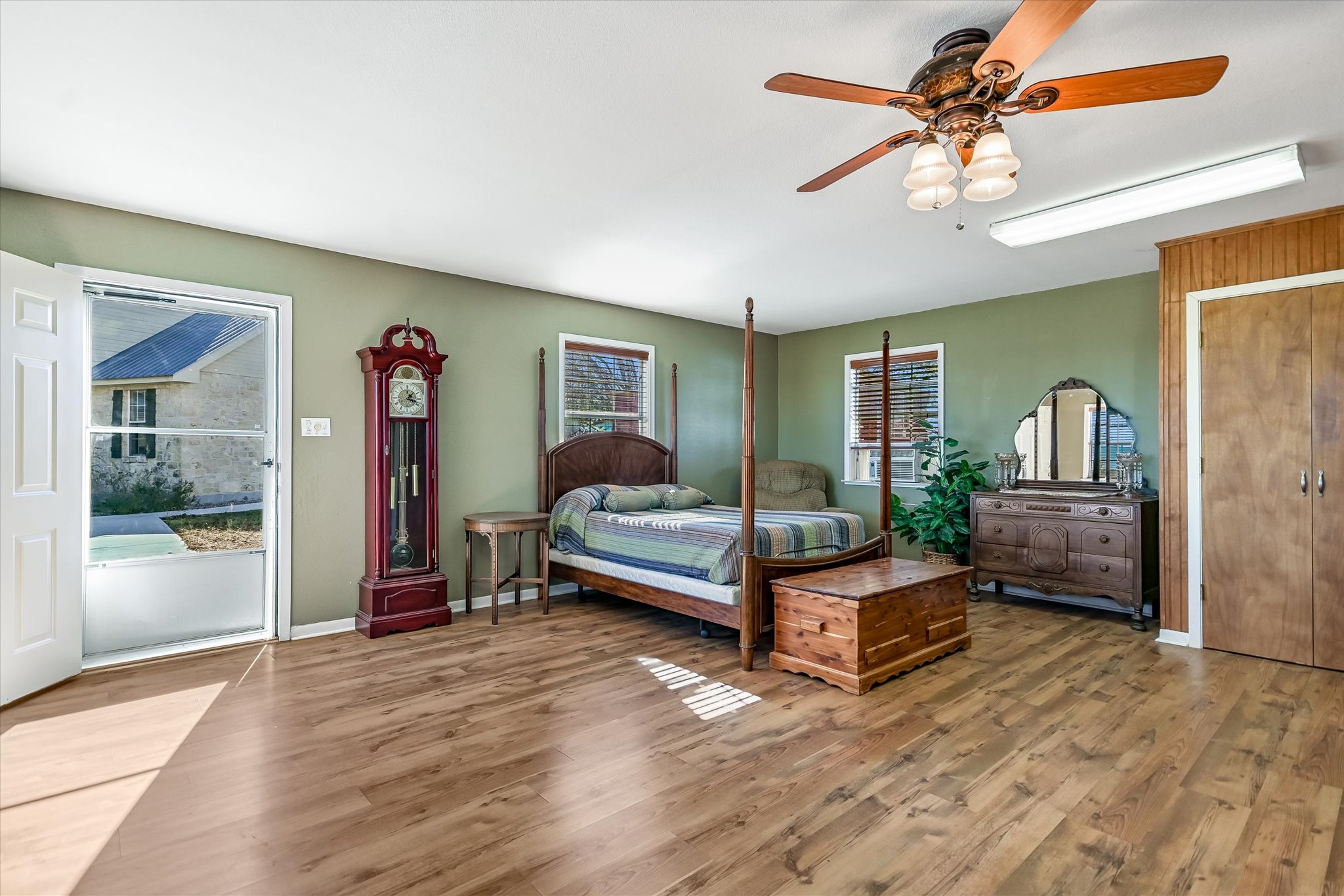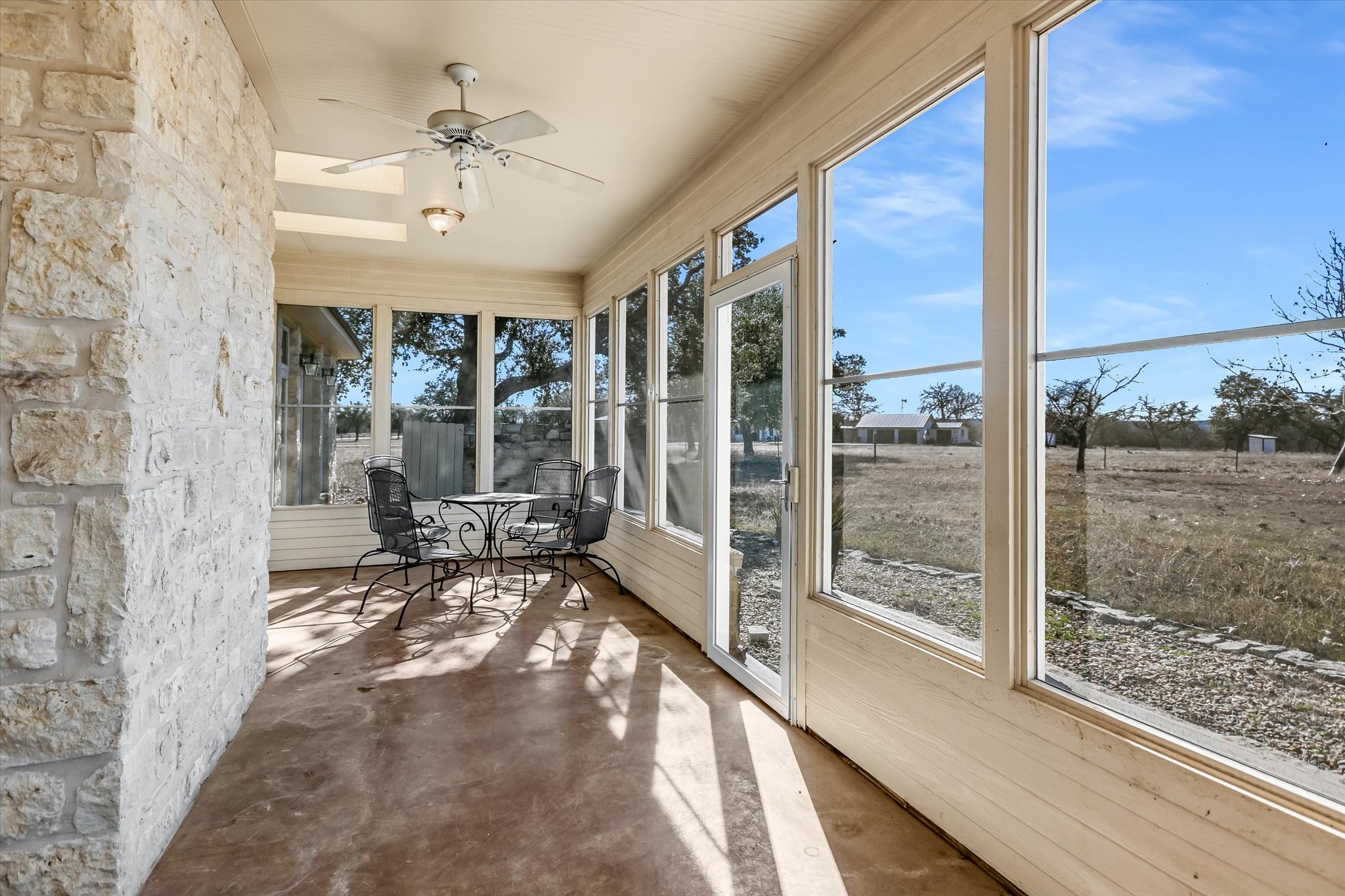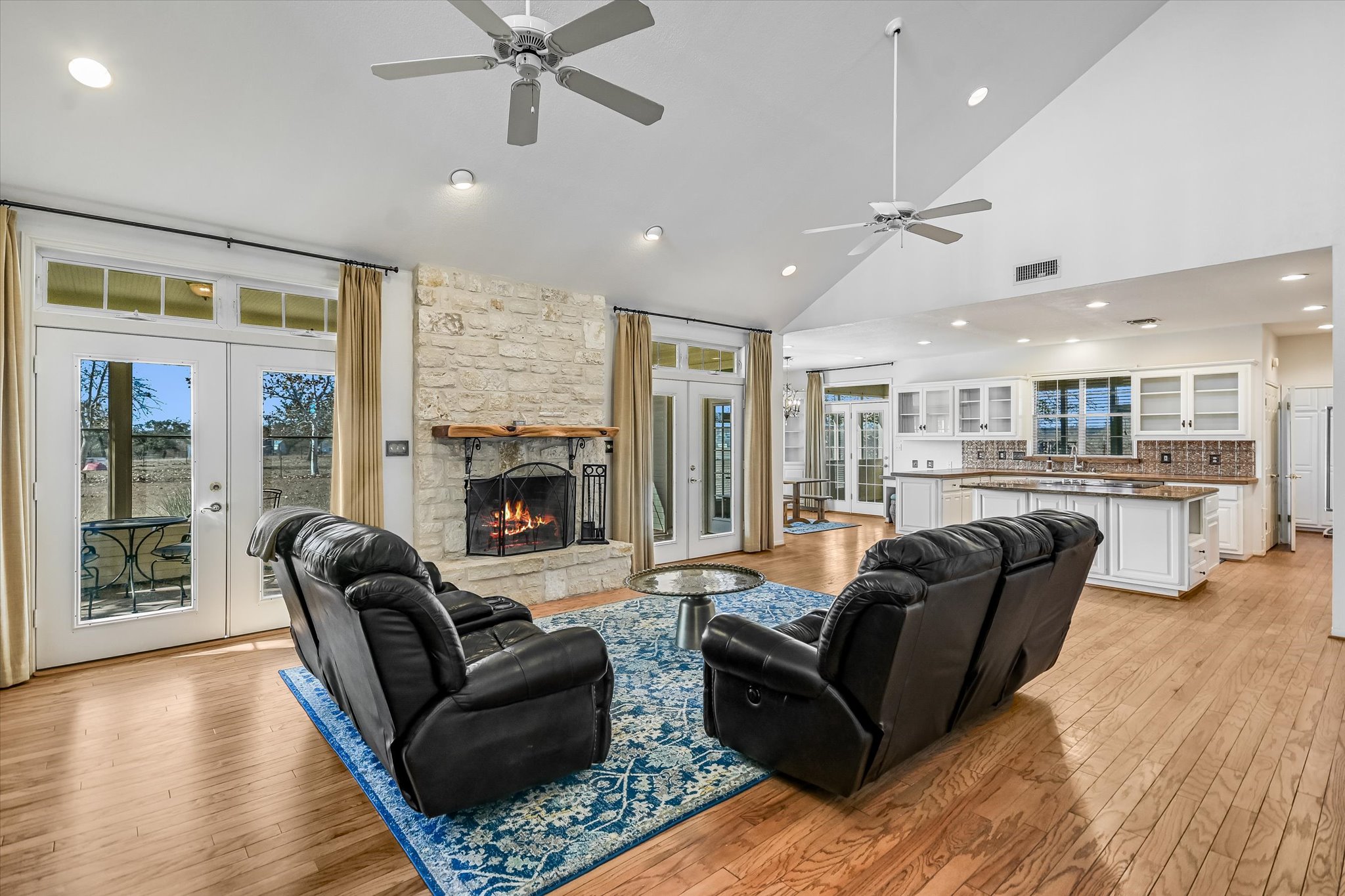 The limestone exterior and metal roof immediately establish a sense of classic Texas craftsmanship; and vintage wood doors and granite countertops throughout the home reinforce a warm, rustic charm that feels both authentic and enduring.