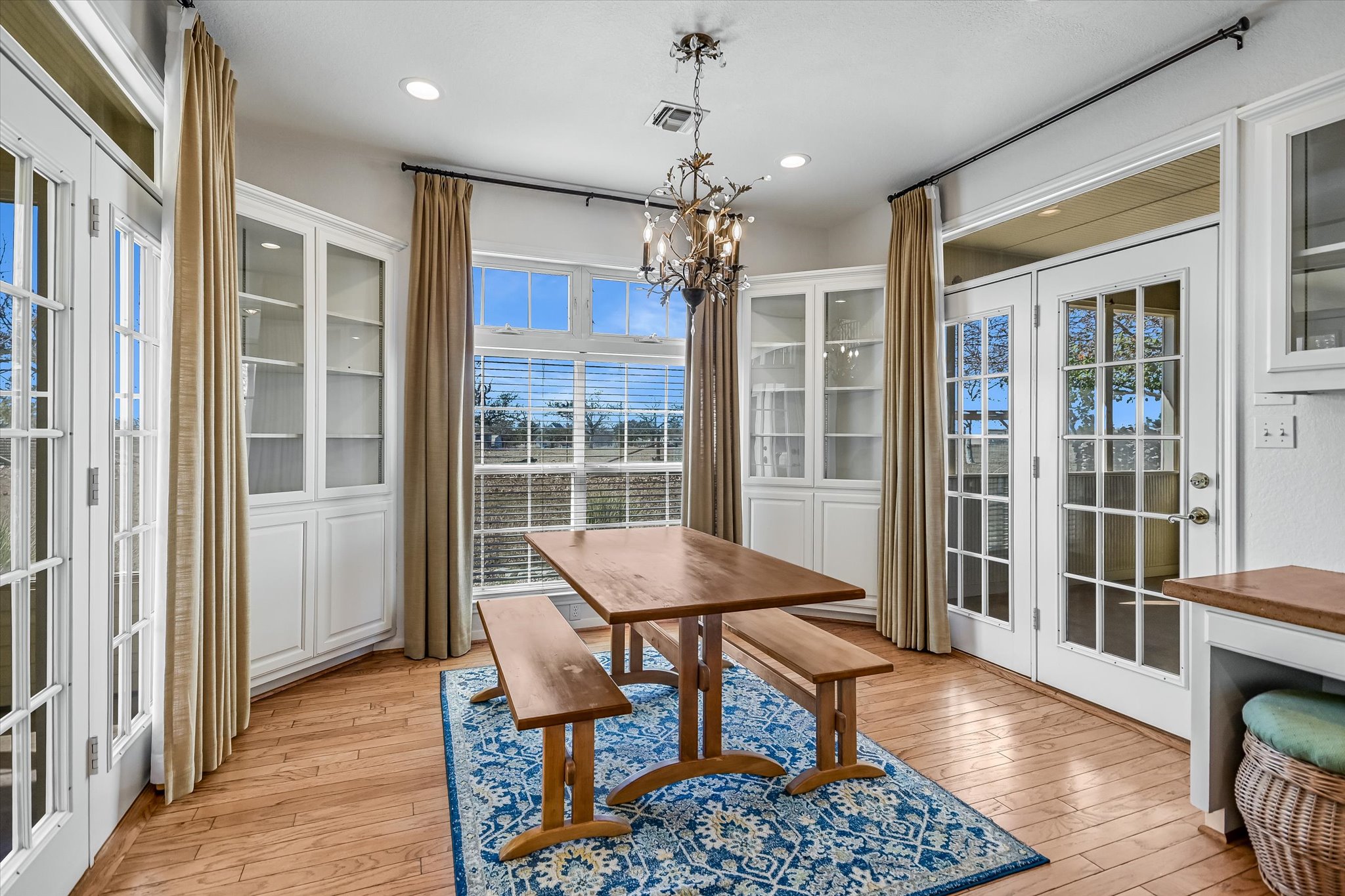 The oversized kitchen provides plenty of room for the cook and helpers, with abundant counter space and an oversized island. The adjacent breakfast room allows others to chat while a meal is being prepared; extensive storage helps keep things tidy.