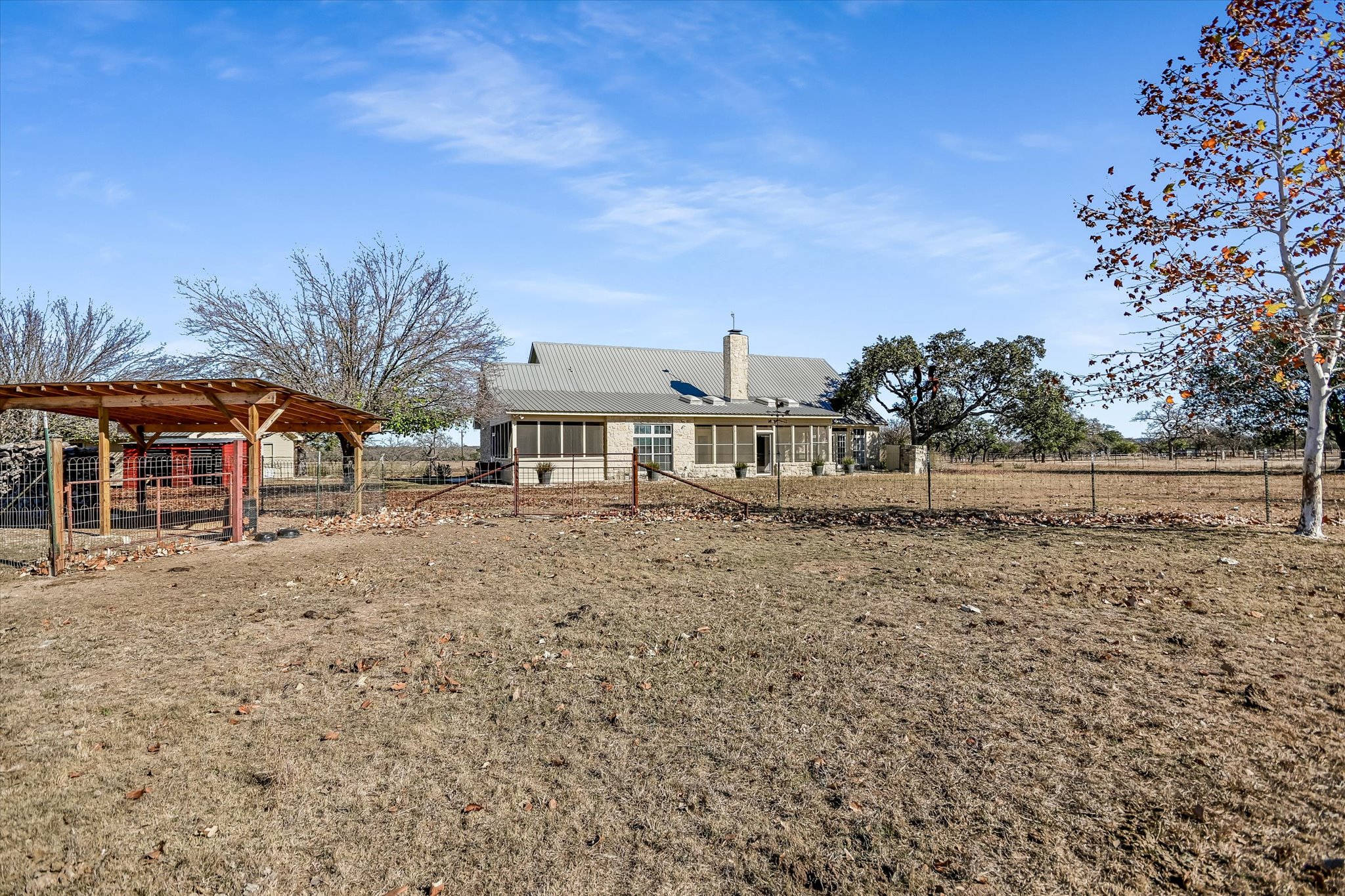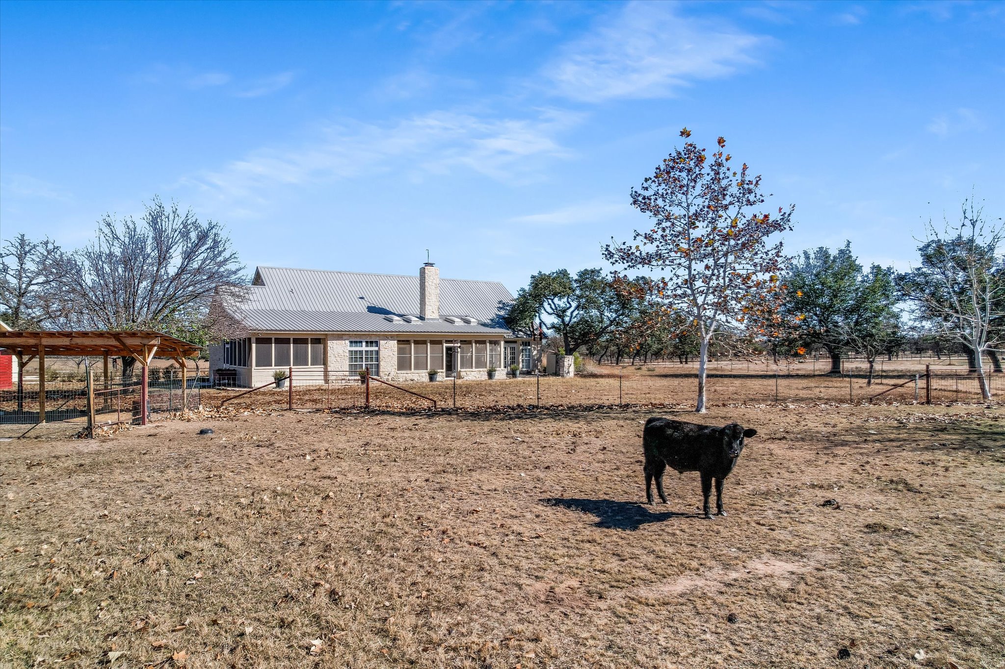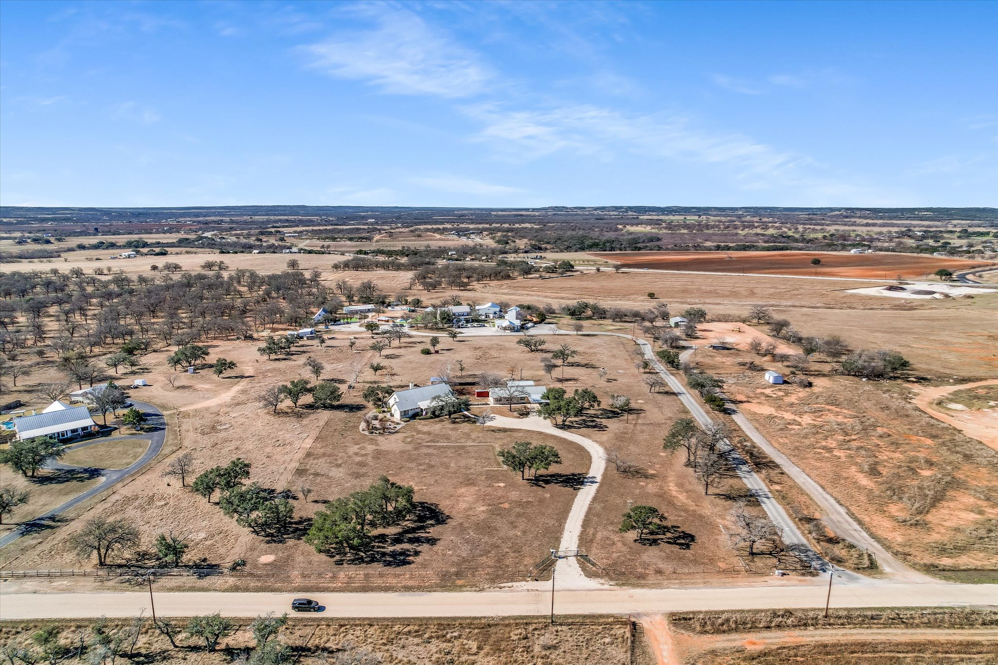 Dotted with mature oaks the level acreage offers plenty of room to roam, whether the roamers are human or animal. Currently the property has an agricultural exemption and hosts two steers, but can also provide a welcoming home for goats, chickens or other native wildlife. The flat landscape offers the opportunity to expand the compound with additional dwellings, a studio, pool or almost anything else you can dream up. Whether envisioned as a full-time residence, weekend retreat, or legacy Hill Country property, this Fredericksburg offering delivers timeless Texas character, thoughtful design, and exceptional versatility near the Texas wine country.